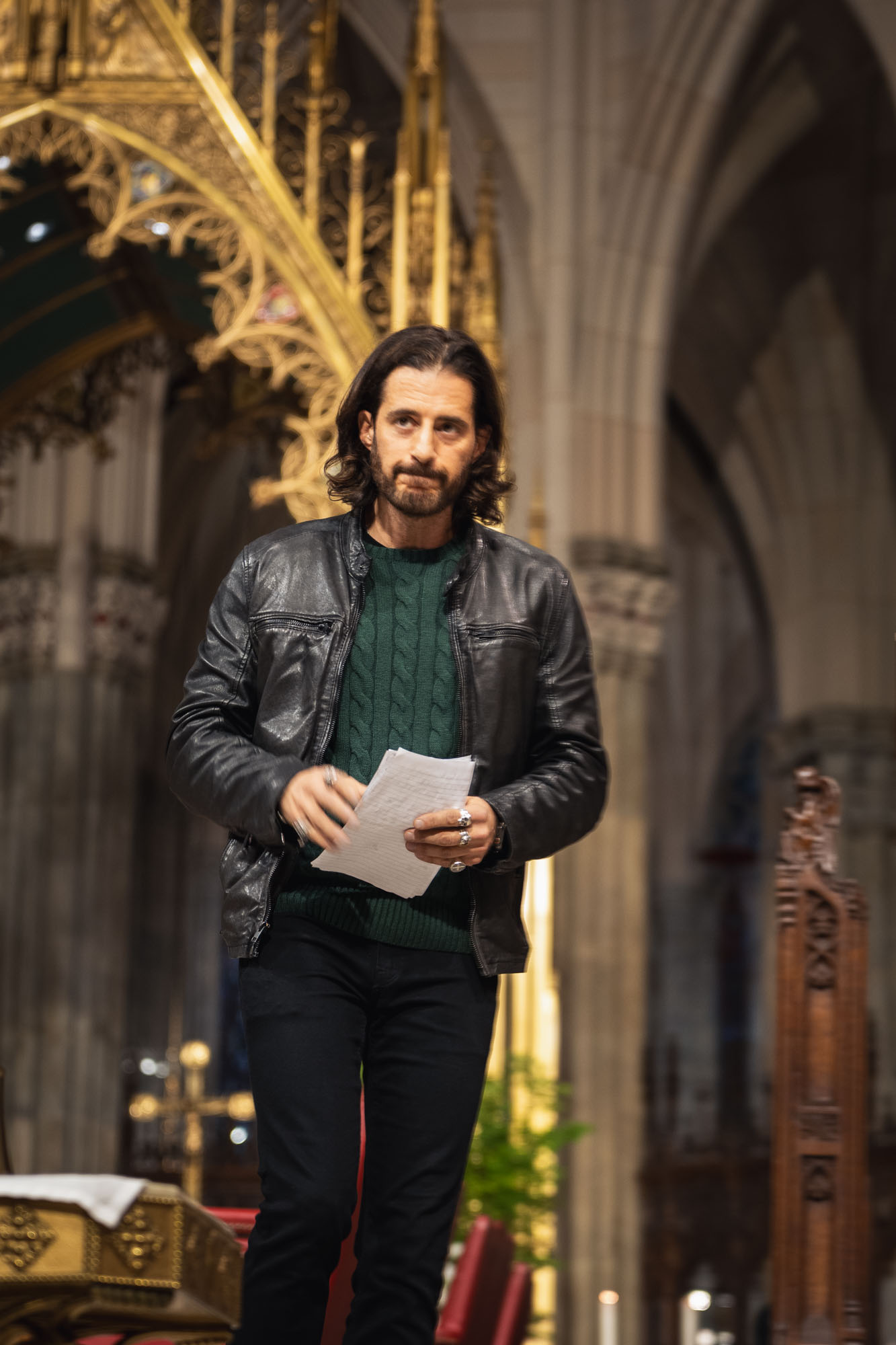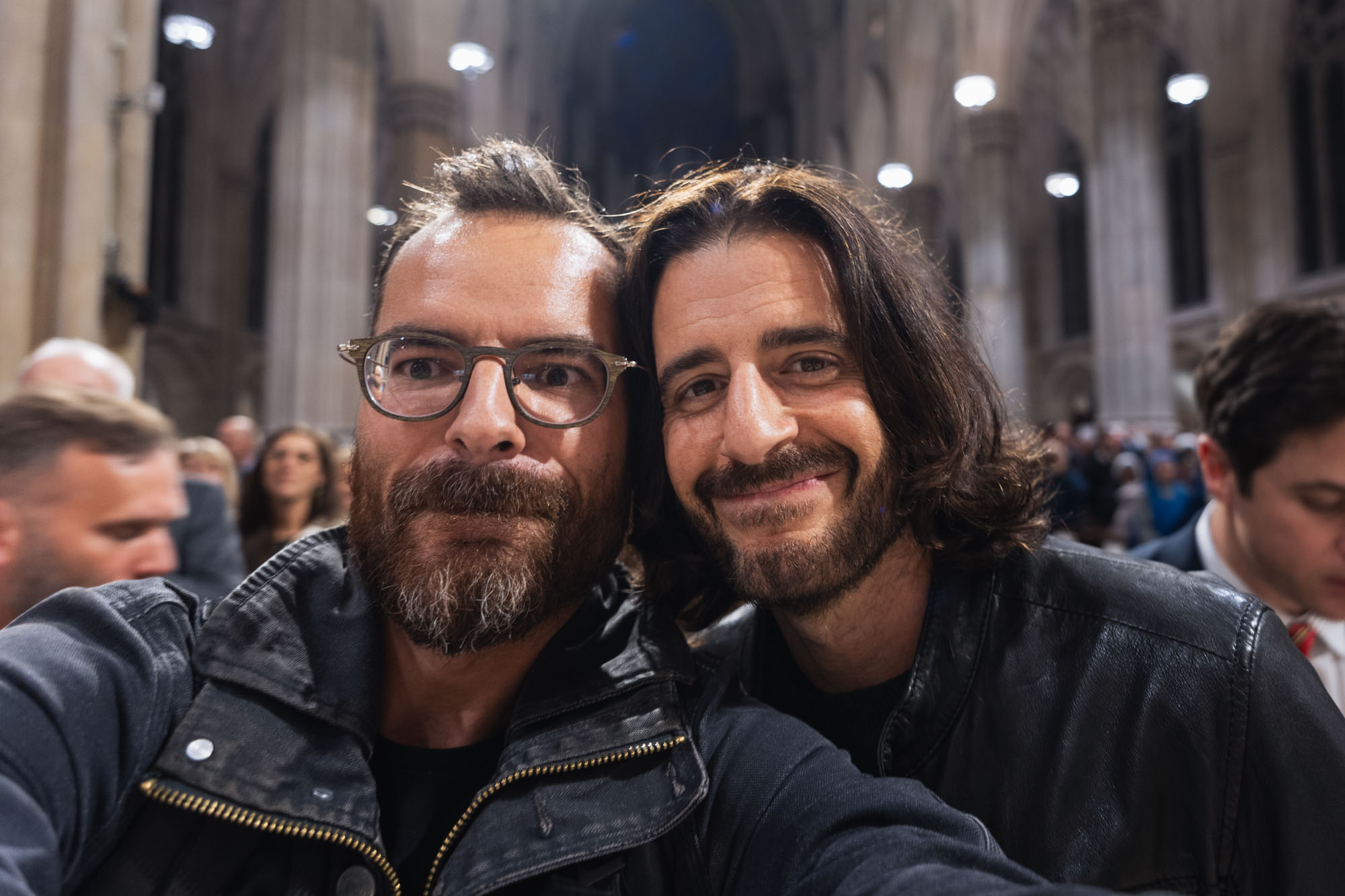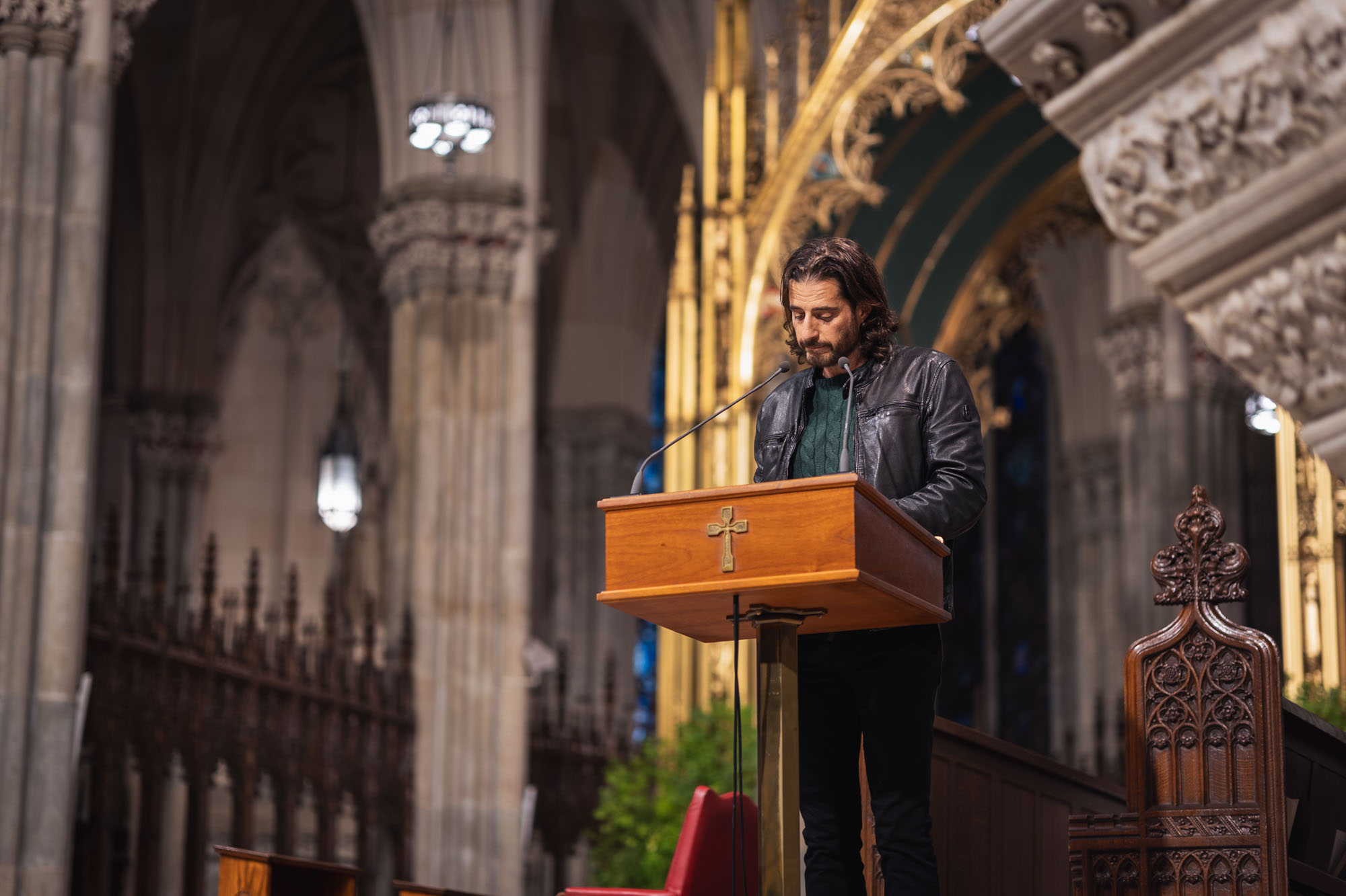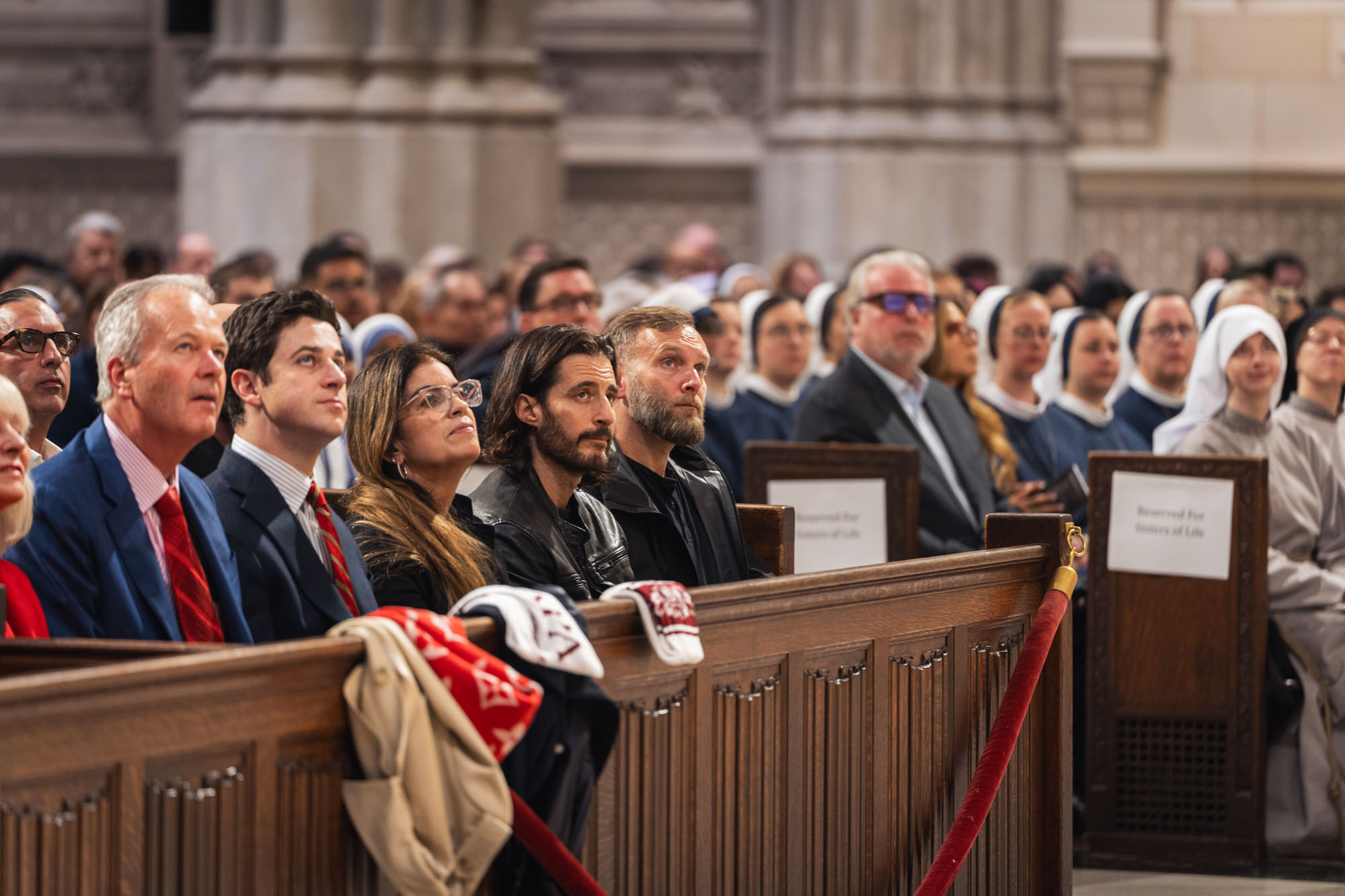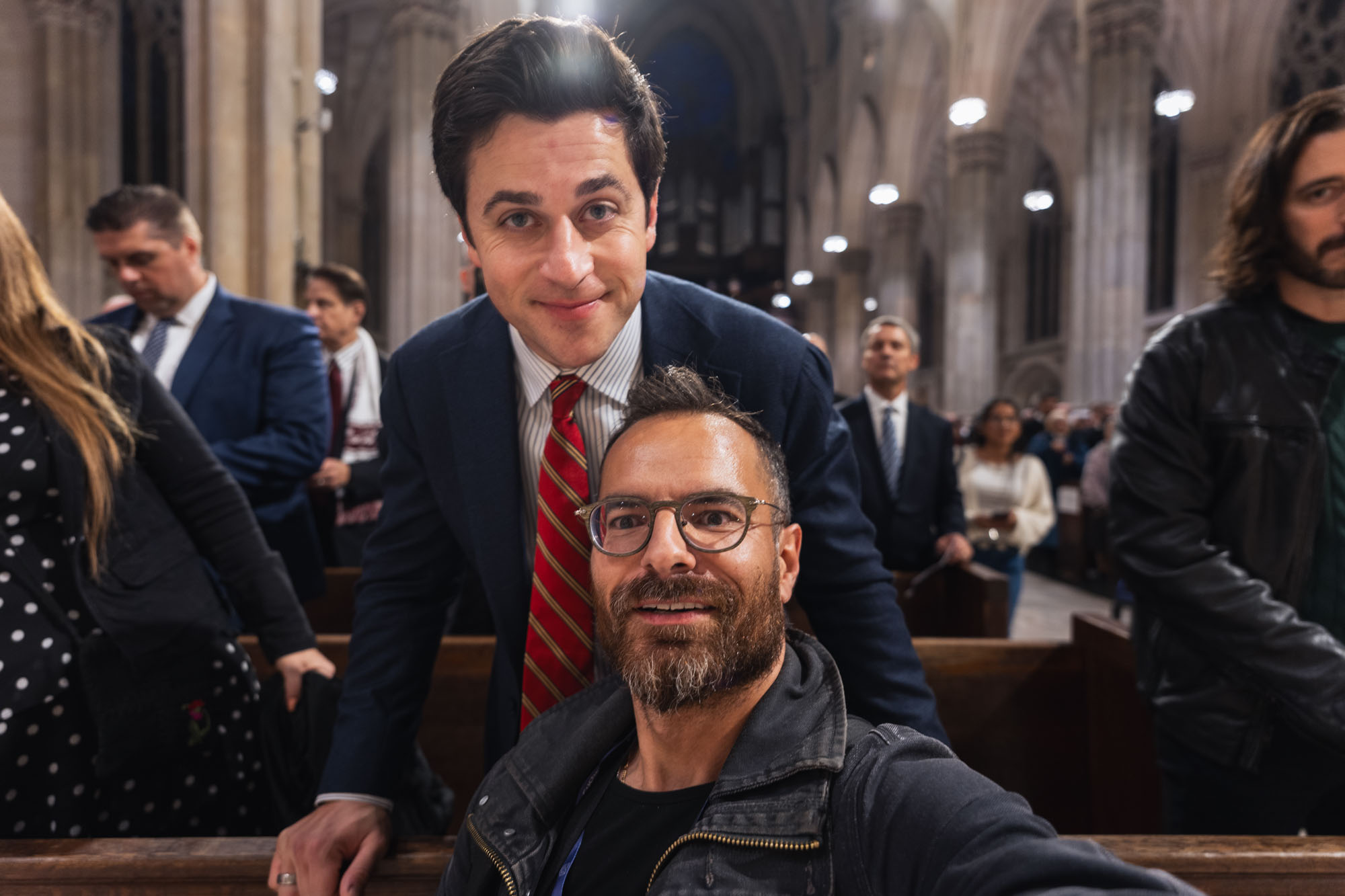 At the end of the event, Jonathan Roumie and David Henrie were seated in the front pew. As soon as the benediction ended, they headed out through the back of the cathedral to avoid the crowds. I happened to be right in front of them!
