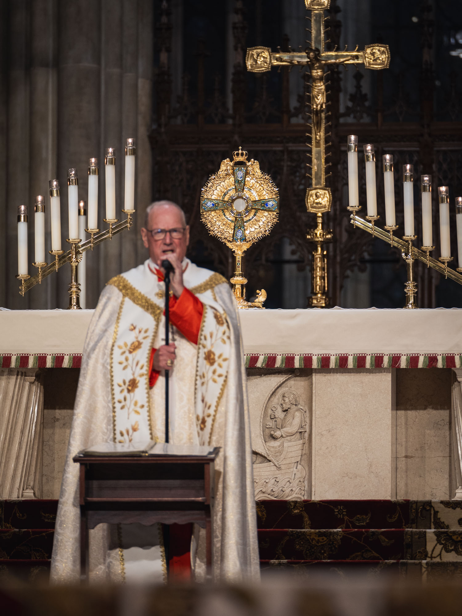 I arrived at St. Patrick’s Cathedral before 3 p.m., just as the meditation was starting. Giorgio Cardinal Marengo and Fr. Ambrose Criste gave beautiful talks on the Holy Eucharist (which you can find here).
