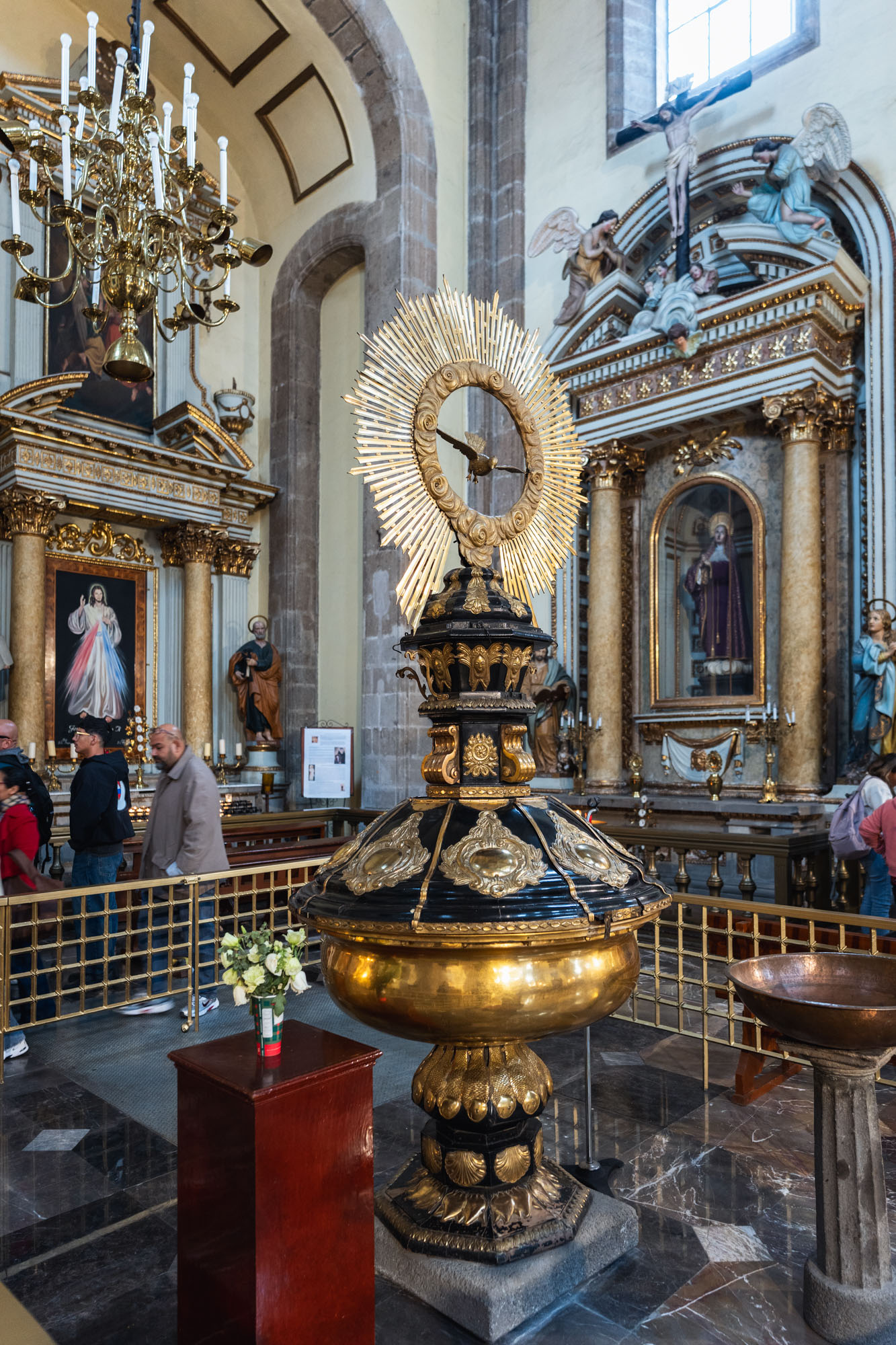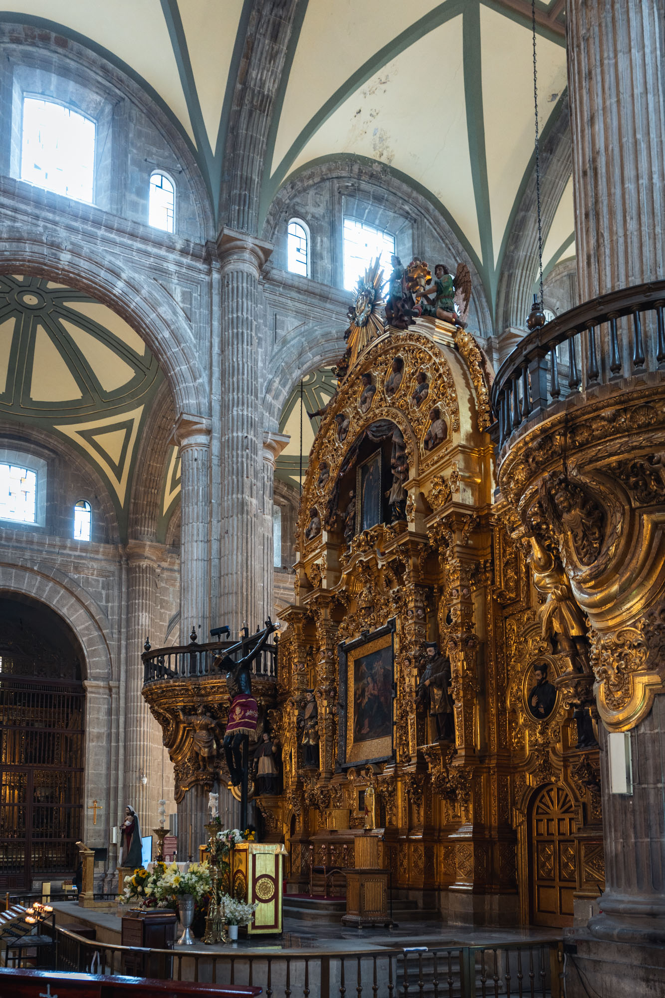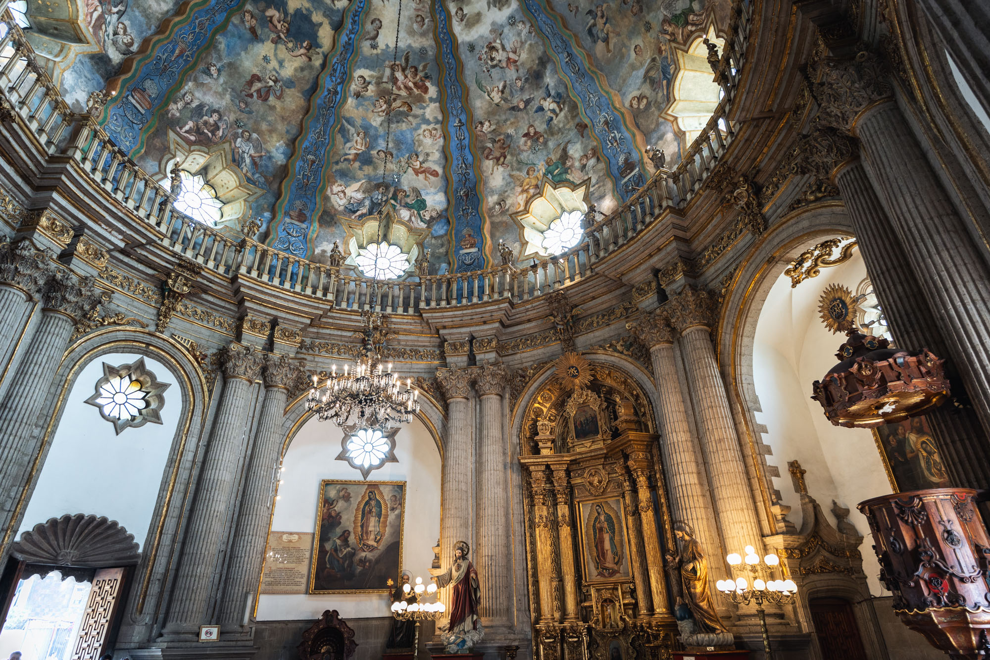 Inside, visitors will find richly decorated chapels, elaborate altars, and one of the most impressive pipe organs in the Americas. The cathedral also holds the remains of several important archbishops and played a central role in the religious life of colonial Mexico.