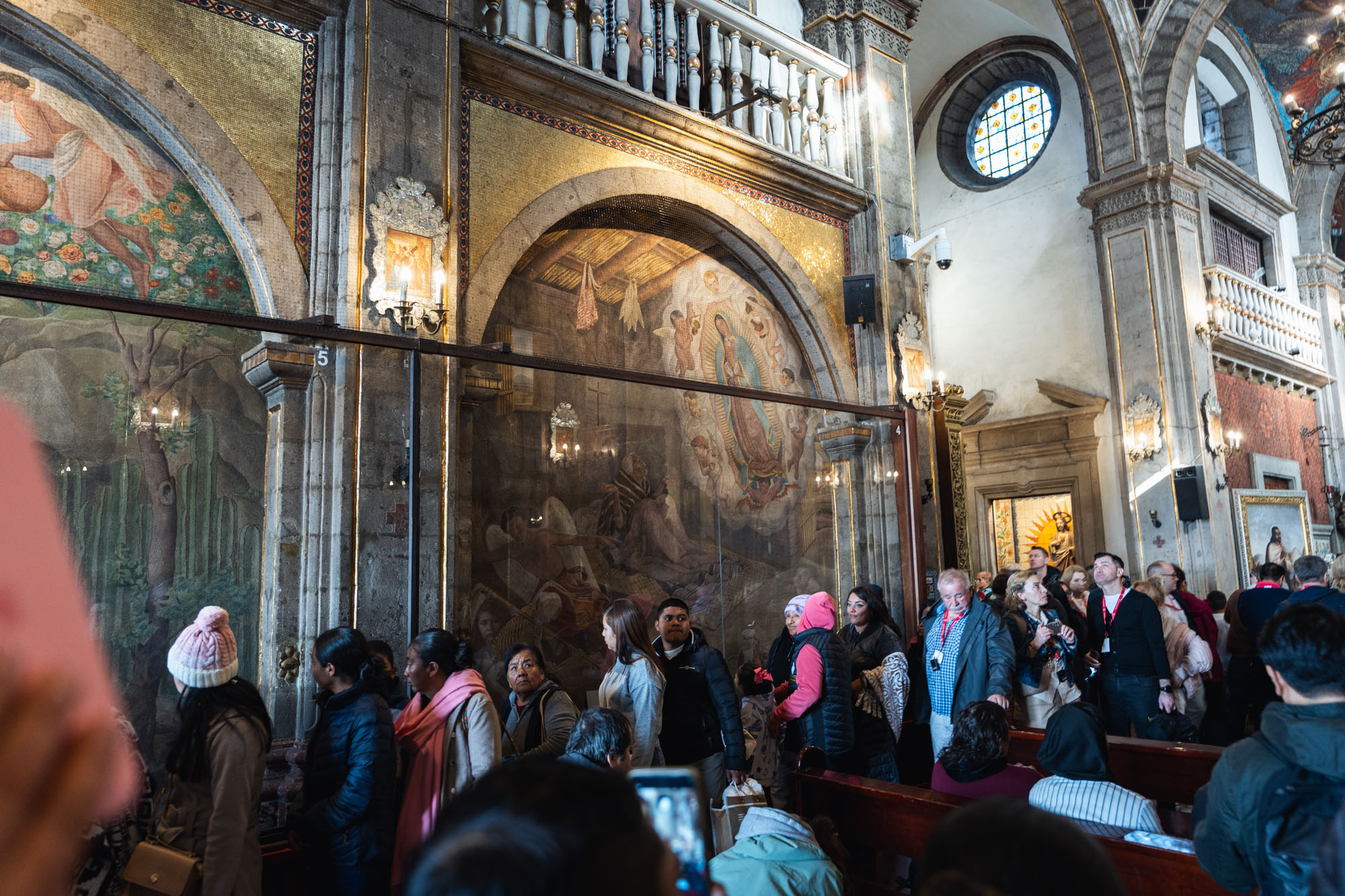 The Basilica of Our Lady of Guadalupe is one of the most important Catholic pilgrimage sites in the world and the most visited Marian shrine in the Americas (approximately 20 million people each year). That is where you can find famous image of Our Lady of Guadalupe from 1531.