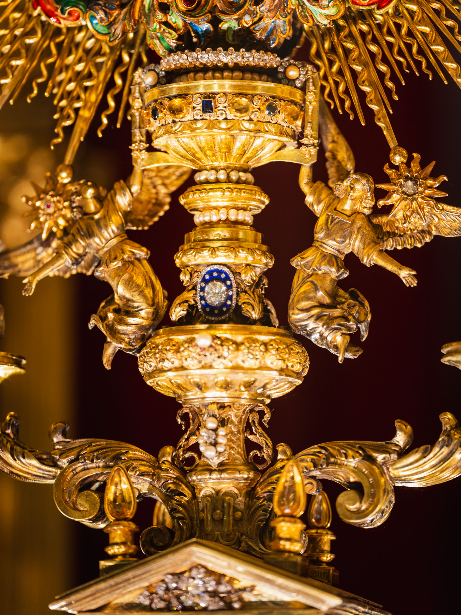 - The Stem: Links the upper part to the base and facilitates the holding or upright placement of the monstrance.